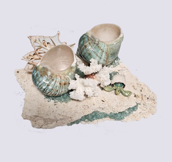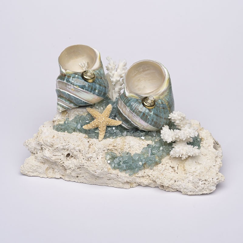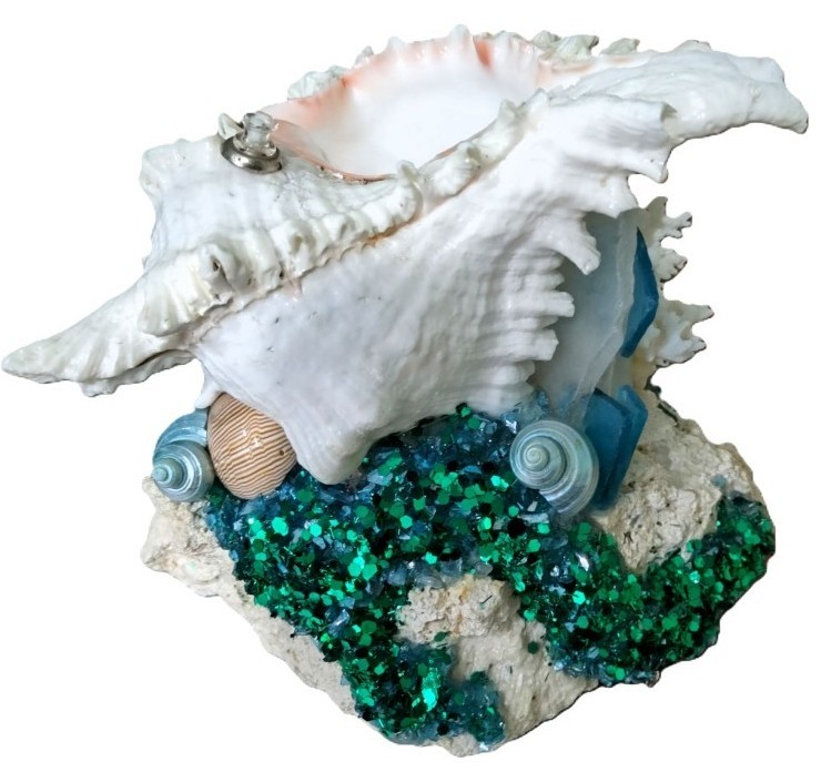 Our line of handcrafted oil candles merge art and ambiance to bring the beauty of the ocean into your home. These candles are made with exquisite seashells, coral accents, and shimmering glass elements. They are perfect for creating a warm, inviting glow. Each design captures the essence of marine elegance, blending functionality with the timeless charm of coastal treasures. Illuminate your space with our unique creations and let the tranquil beauty of the sea inspire your decor.